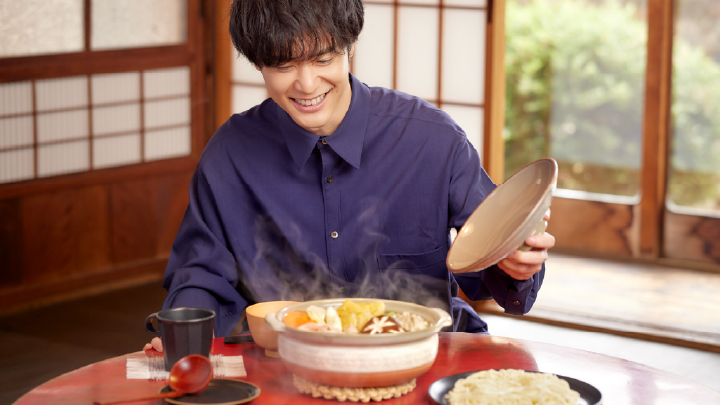 ふたを開けた瞬間、大塚さんは「うわ!おいしそう」と満面の笑み。「お肉はジューシーで柔らかくて、旨味がたっぷり。みその香りが立ち、お肉と野菜をうまくまとめていて本当にとてもおいしい。みそ鍋の概念が変わりました!」と、〆のうどんまでしっかり堪能しました。