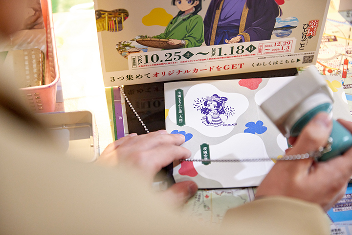 無事、3つのスタンプを集めた大塚さん。達成記念の壬氏のアクリルカードをゲットして満面の笑みに。今回のスタンプラリーを終えて大塚さんは「今まで知らなかった茨城のさまざまな魅力を堪能することができて大満足です。ぜひ猫猫と壬氏と一緒に、皆さんそれぞれ茨城の魅力を集めてほしいです」とスタンプラリーを通して茨城の旅を心底楽しまれたようでした。「壬氏は猫猫が行くところ、どこにでも行きますから(笑)。私も、壬氏コースの残りのスポットはもちろん、猫猫コースのスポットもめぐり、さらにこの茨城の魅力を知りたいですね!」とすがすがしい笑顔で旅を締めくくりました。